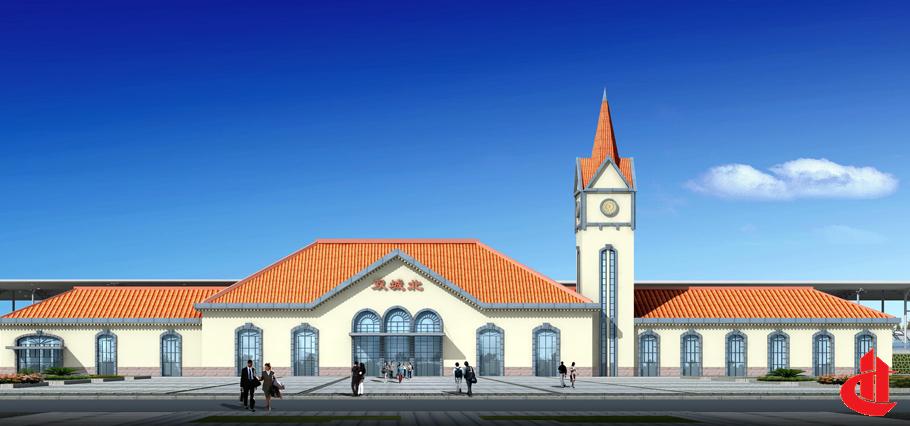 雙城北站采用傳統(tǒng)歐式建筑風(fēng)格,站舍不對(duì)稱構(gòu)圖,和拱門有效結(jié)合。車站建筑總建筑面積3226.50m²,