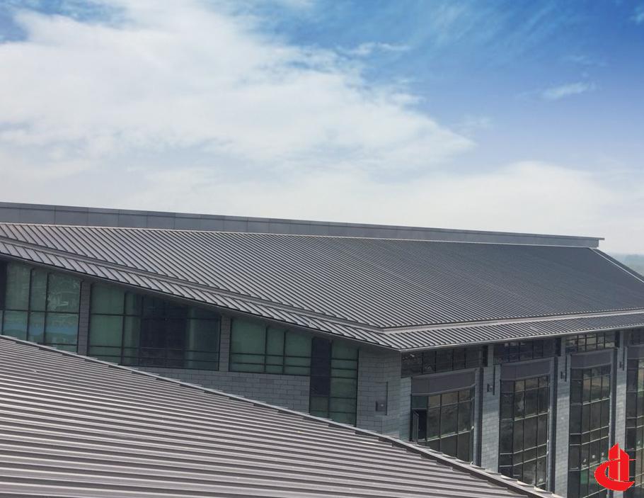 屋面面積約5000m2,屋面包含金屬屋面系統(tǒng)、天溝系統(tǒng)及落水管、檐口鋁單板等。
